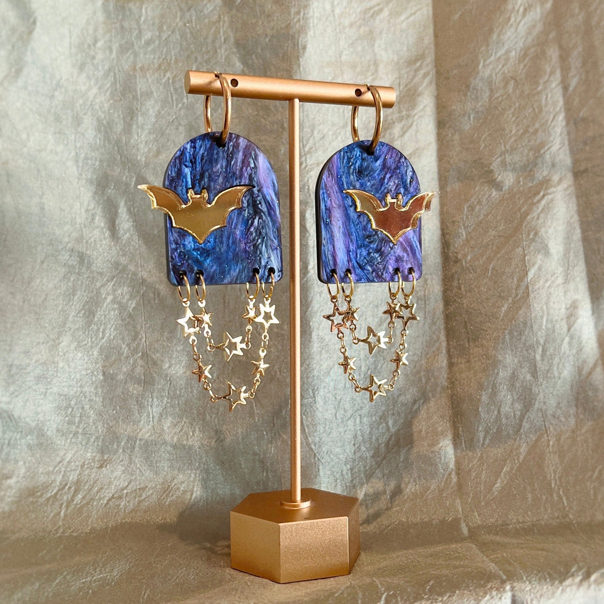 Battie for these earrings! Each pair is made by hand. They are made from acrylic, which means they are very lightweight. All findings are hypoallergenic (see the findings section below for more detail).