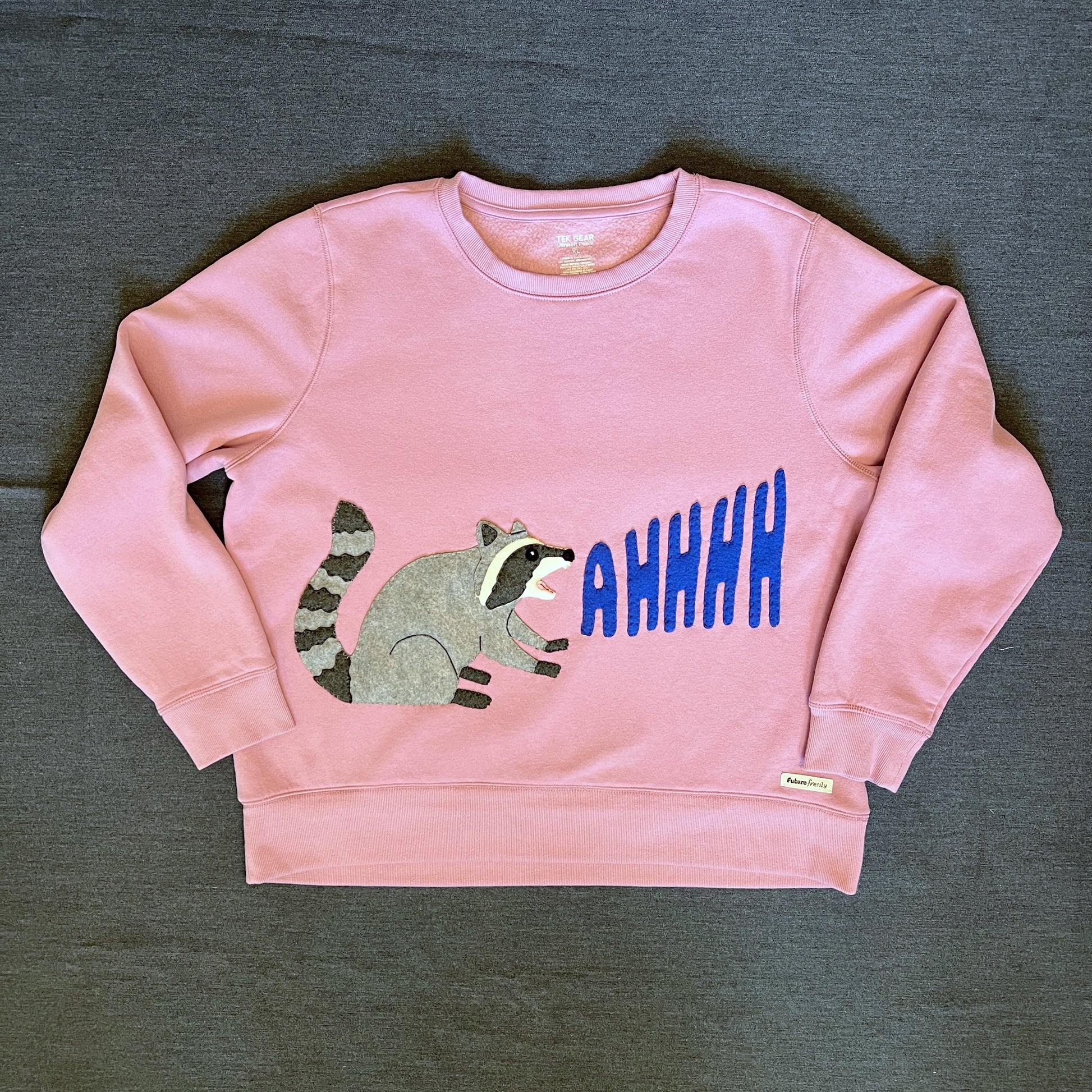 Shirts are secondhand, found in local thrift stores and letters are made from secondhand materials; they are hand cut and hand sewn onto the shirts.